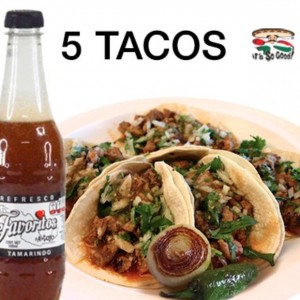 5 BURRITOS, 1 SIDE CHIPS, 1 SIDE DE SALSA & CHIPS.