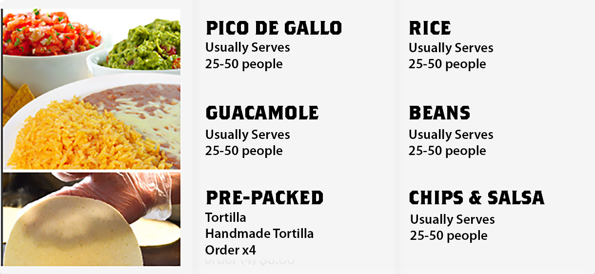 🌮 Perfecto para cumpleaños, eventos corporativos o reuniones familiares, nuestro menú de catering incluye auténticos platos mexicanos: tacos, enchiladas, arroz, frijoles y más, recién hechos para compartir con sus invitados.